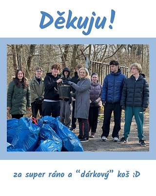 Potěšilo mě, kolik studentů se do úklidu - dobrovolně! - zapojilo - bylo jich 26! A to je super. Je vidět, že mladým skutečně na přírodě záleží a že jim nevadí vzít si na pár hodin rukavice a odklízet to, co do přírody naházeli jiní.